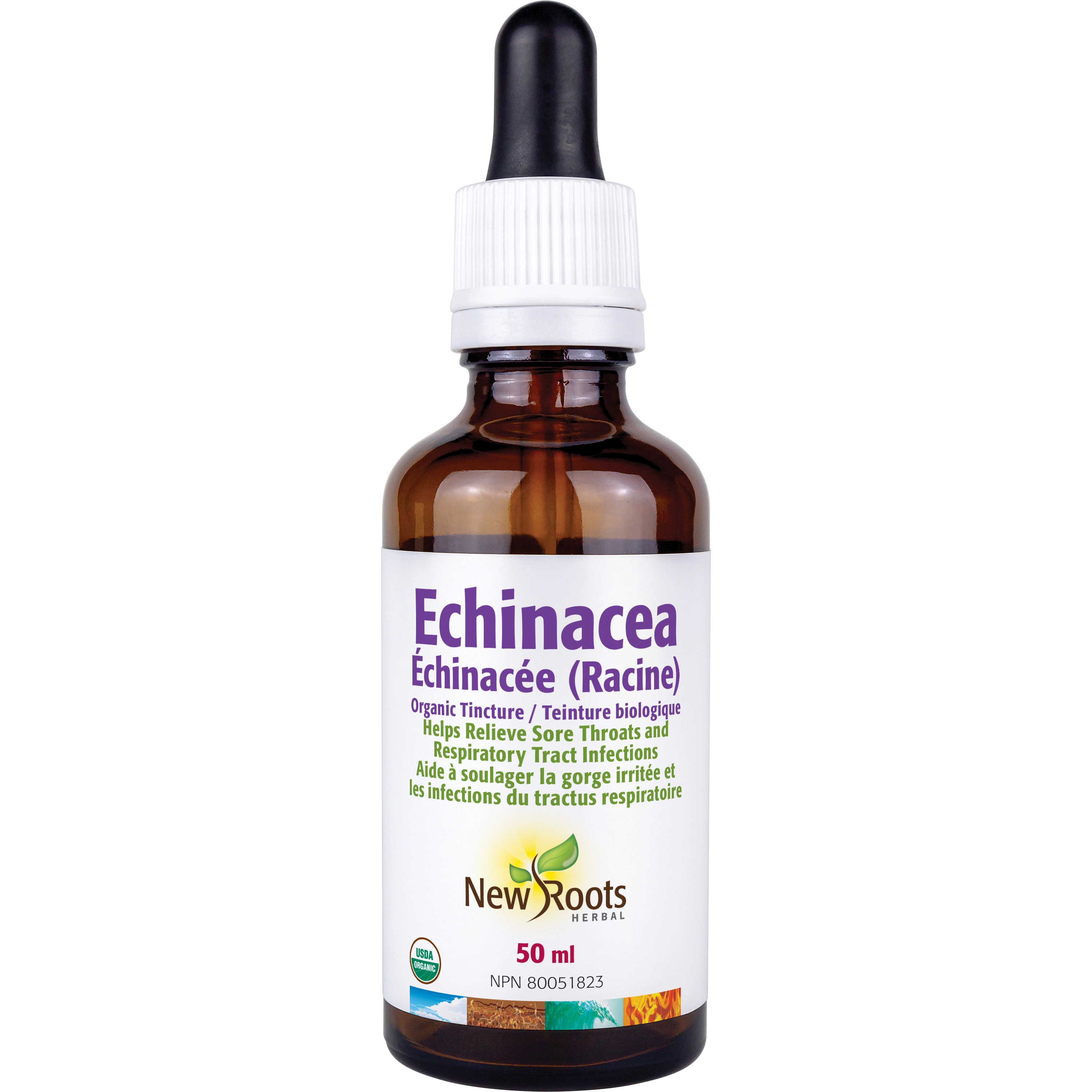 New Roots Herbalâs Echinacea Root is a premium organic tincture crafted from superior-quality Echinacea angustifolia roots to provide robust immune support. This potent extract is designed to bolster your bodyâs natural defenses and promote overall respiratory wellness, ensuring you stay resilient during seasonal transitions. When cold or flu symptoms take hold in your upper respiratory tract, this versatile liquid formula offers relief to help in your recovery. It is specifically formulated to soothe sore throats and assist in relieving more stubborn respiratory tract infections. For a comforting experience, the tincture can be easily added to warm water or other soothing beverages, making it a seamless and natural addition to your wellness routine when you need it most.