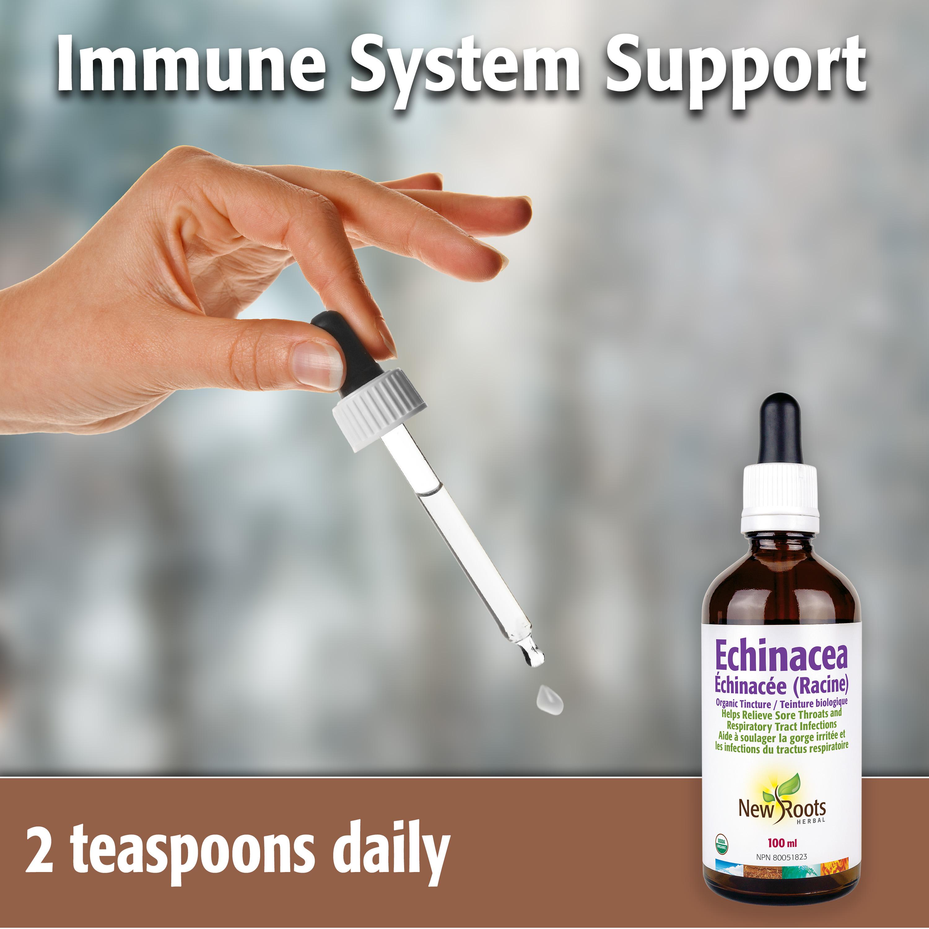 Echinacea root contains natural compounds that may support your bodyâs immune system and overall wellness. Research suggests it can help the body respond to seasonal stressors and maintain balanced immune function. Our liquid tincture, made from high-quality organic Echinacea angustifolia, is fast-absorbing and crafted to deliver consistent, natural support during seasonal changes.